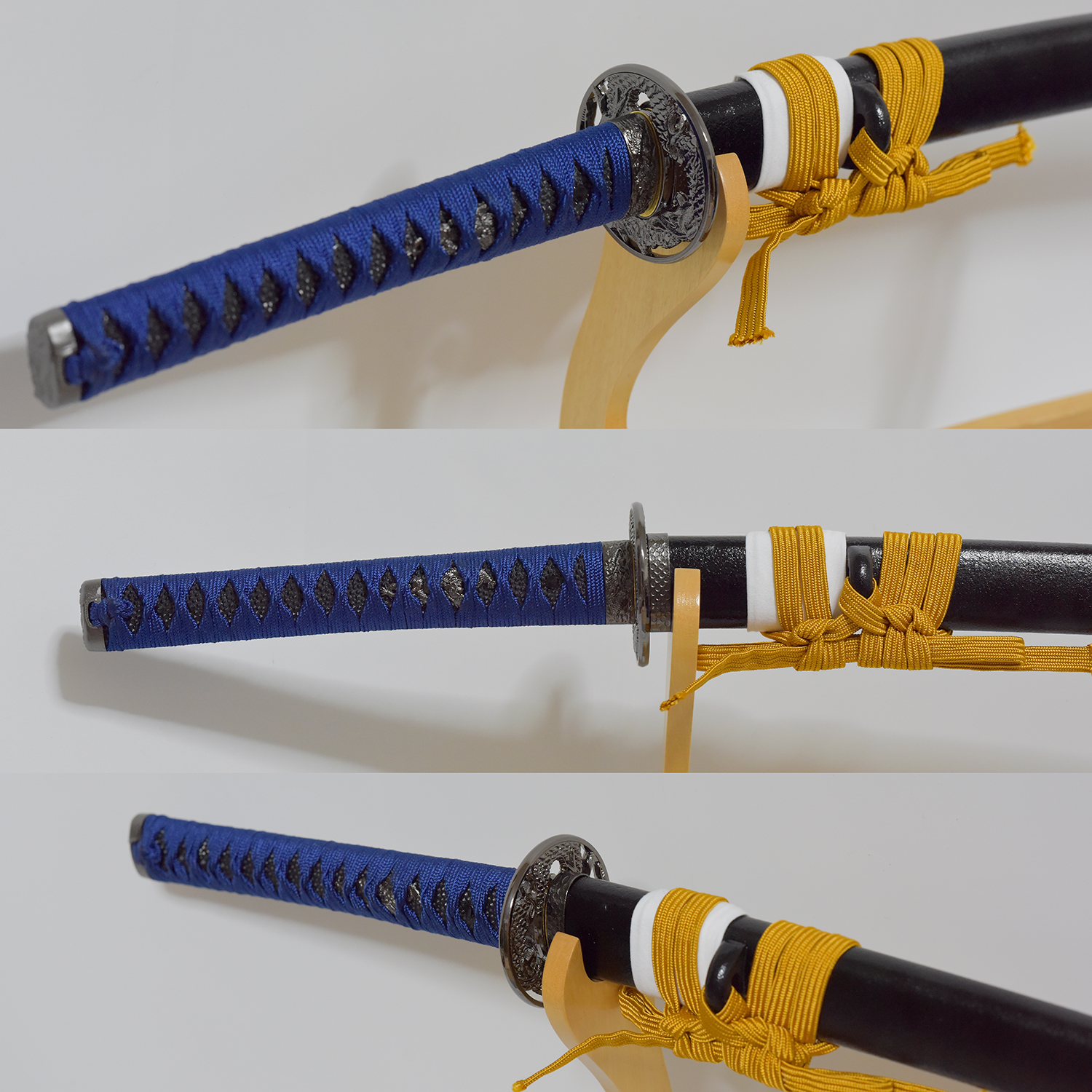 柄:黒鮫、青糸、黒龍金具3点(柄頭・柄縁・目貫の3点が黒龍)